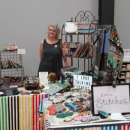 EVA in stitches designs and makes household items and personal accessories using beautiful fabric sourced locally and overseas. The range includes zip purses, tote bags, sunglass cases, scarves, bunting and other small items.