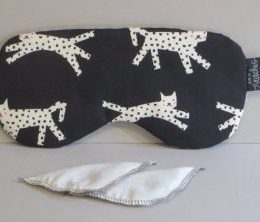 There is also a lavender range – heat packs, sleep masks with lavender inserts and relaxation eye masks. For children I make an embroidered sleepy cat cuddly version of the relaxation mask.