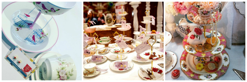 Next I added the upcycled cake stands (my first were for my daughters’ birthdays in 2011). At the time I couldn’t find any, as they weren’t very common back then. I used the famous words, ‘I will make them’. So it was a good mix to sell cake stands with the teacups. Some are trinket in size, so perfect for putting jewellery on.