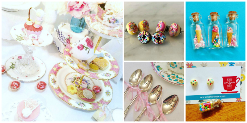 Kate and Rose has a mix of vintage and upcycled products, including kawaii inspired jewellery and a new High Tea themed collection, which has vintage plates upcycled into cake stands, and soy candles set in vintage teacups, apothecary jars and other recycled containers.