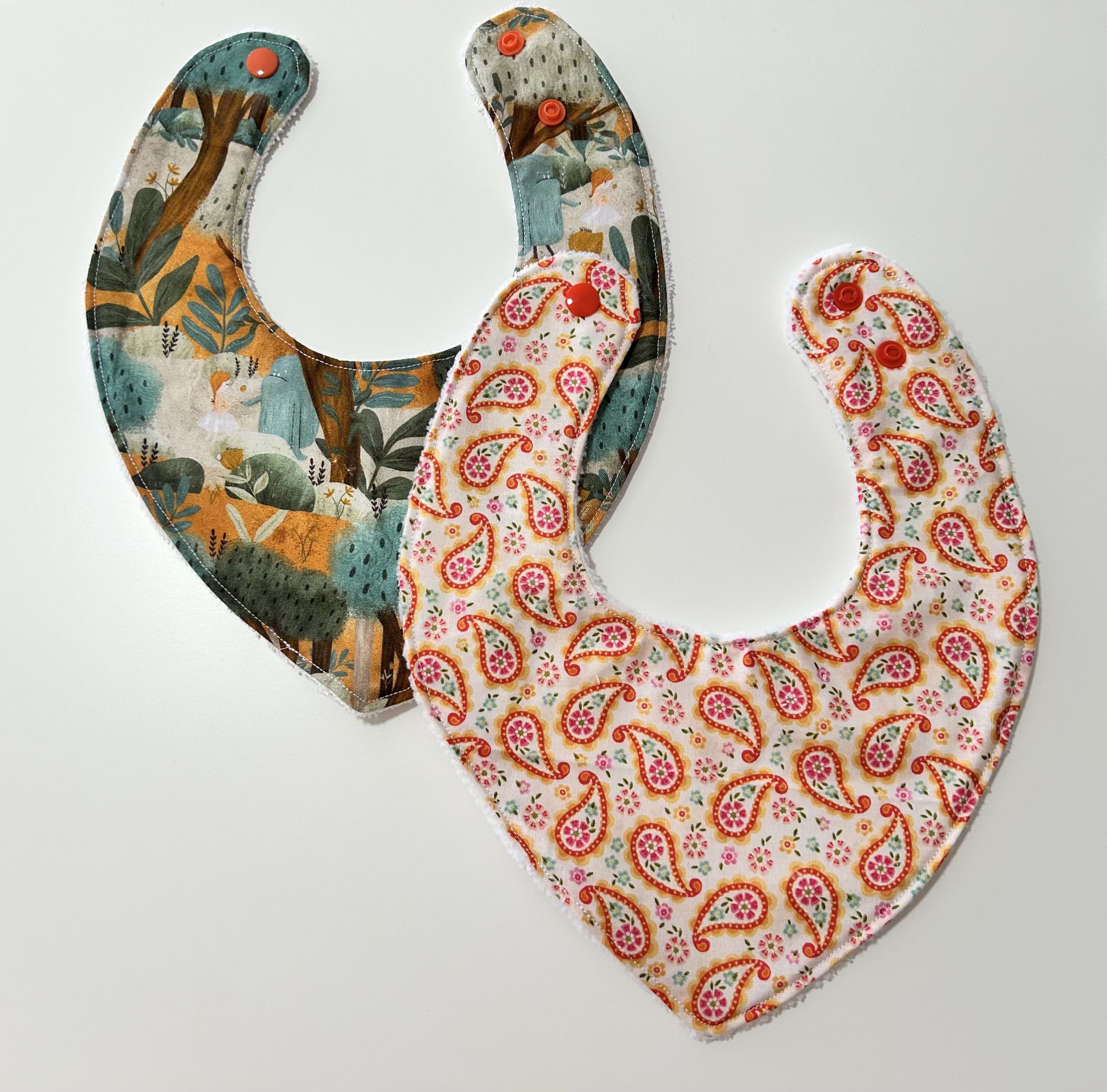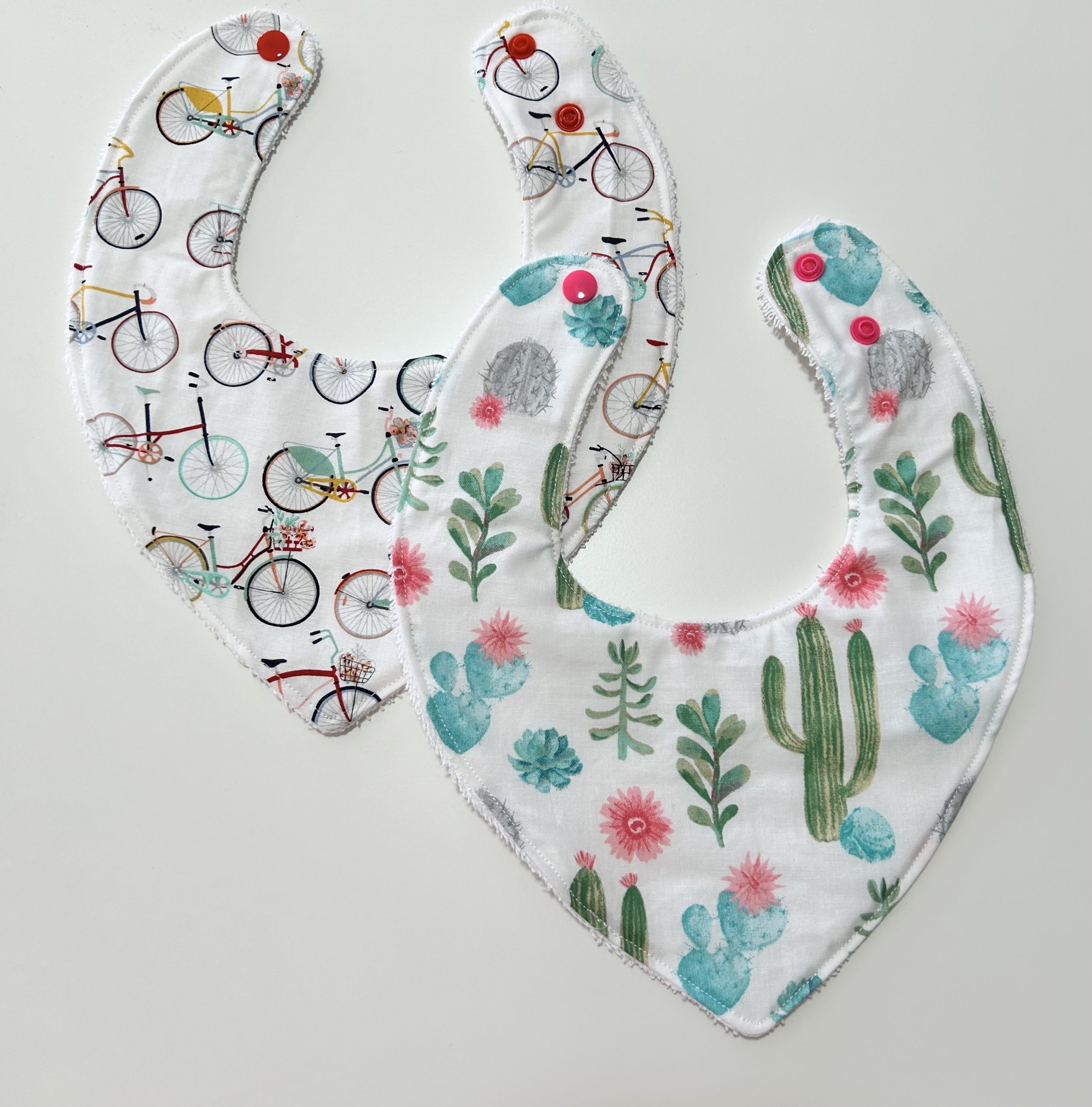 Beautifully Handmade dribble bib/bandana bib. A perfect way to keep your baby dry and also looking adorable in these trendy fabric designs.