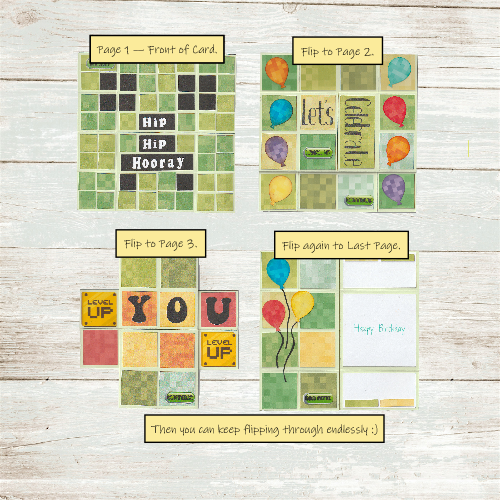 Fun fold card in minecraft style. Card is a fun fold called an infinity or never-ending card. Flip continuously through the sayings 🙂