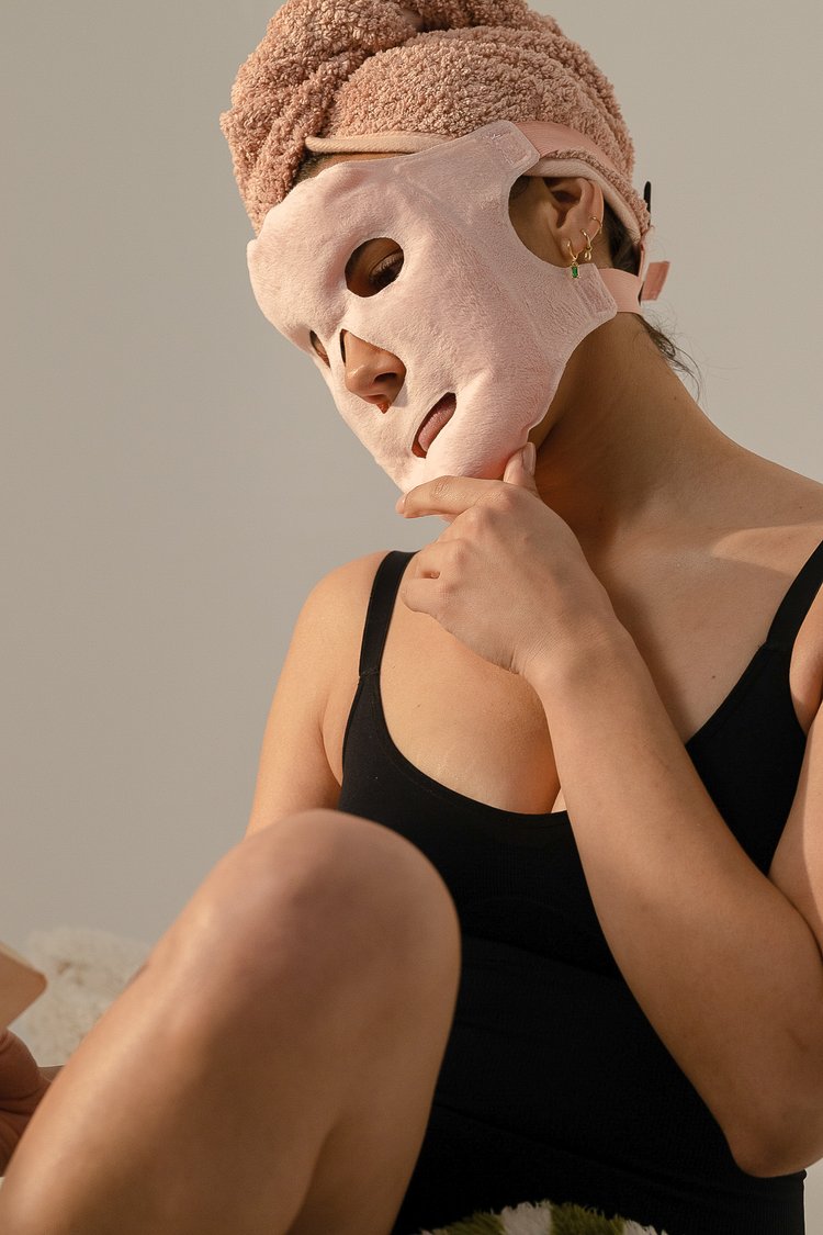 Pop this bad boy in the fridge or freezer for 15-20 mins, and rub the mask onto your hands to ensure beads are movable and not frozen; once the mask is at a comfortable temperature strap it onto your face for 10 mins.