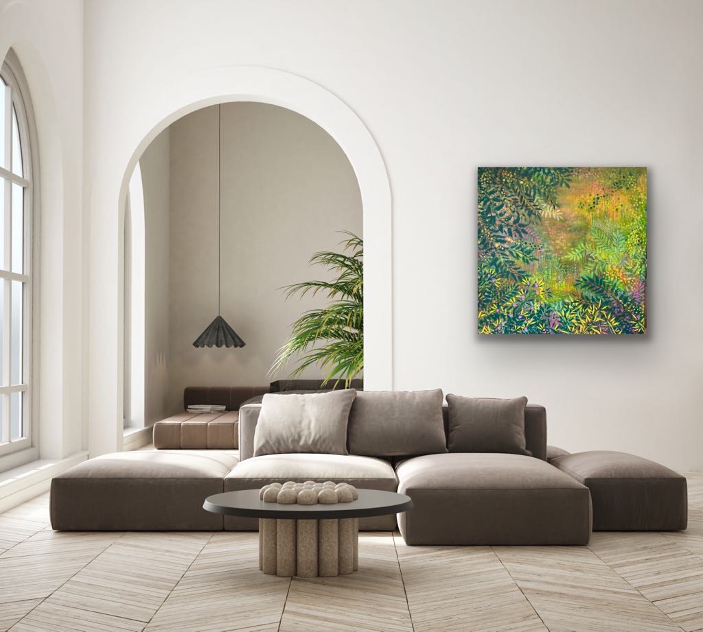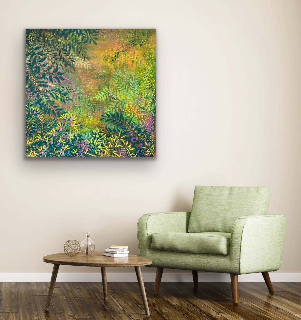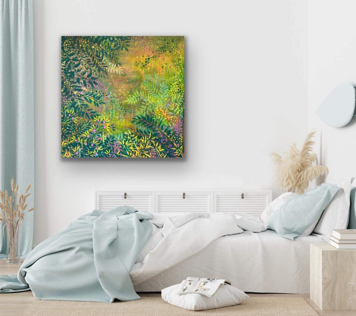 This enchanting, imaginary landscape draws the viewer’s eye deep into her mysterious botanical wonderland. Is that a hidden path you see?