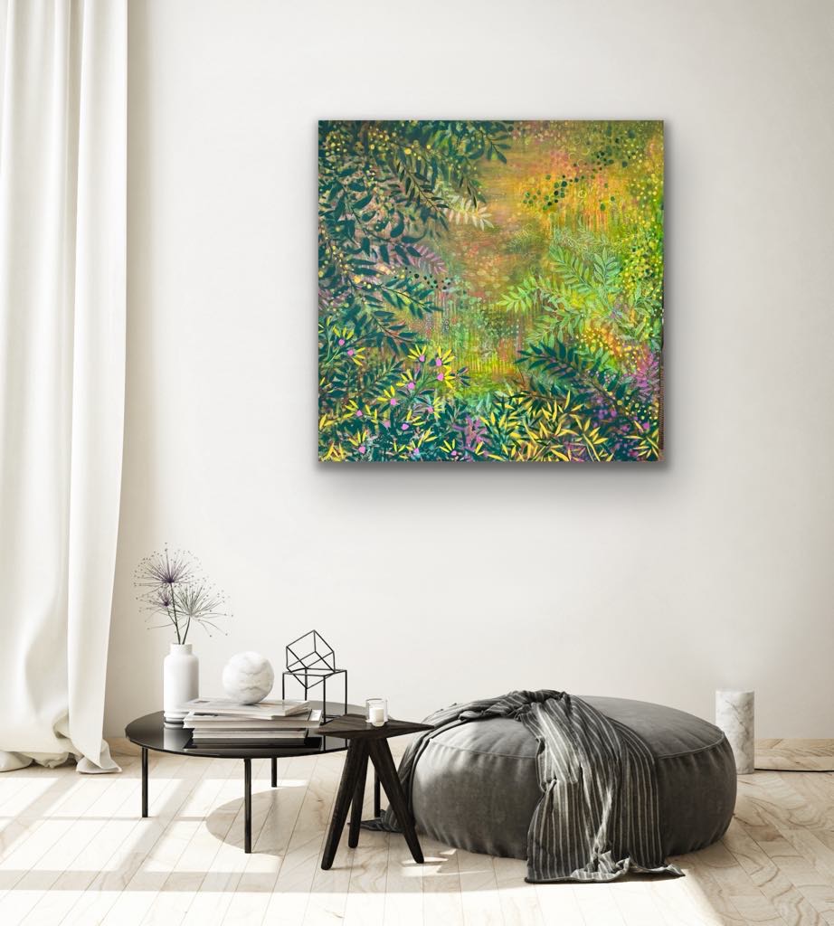 Enchanted Gully was slowly developed over many hours of intuitive painting, each day, over 5 days.
