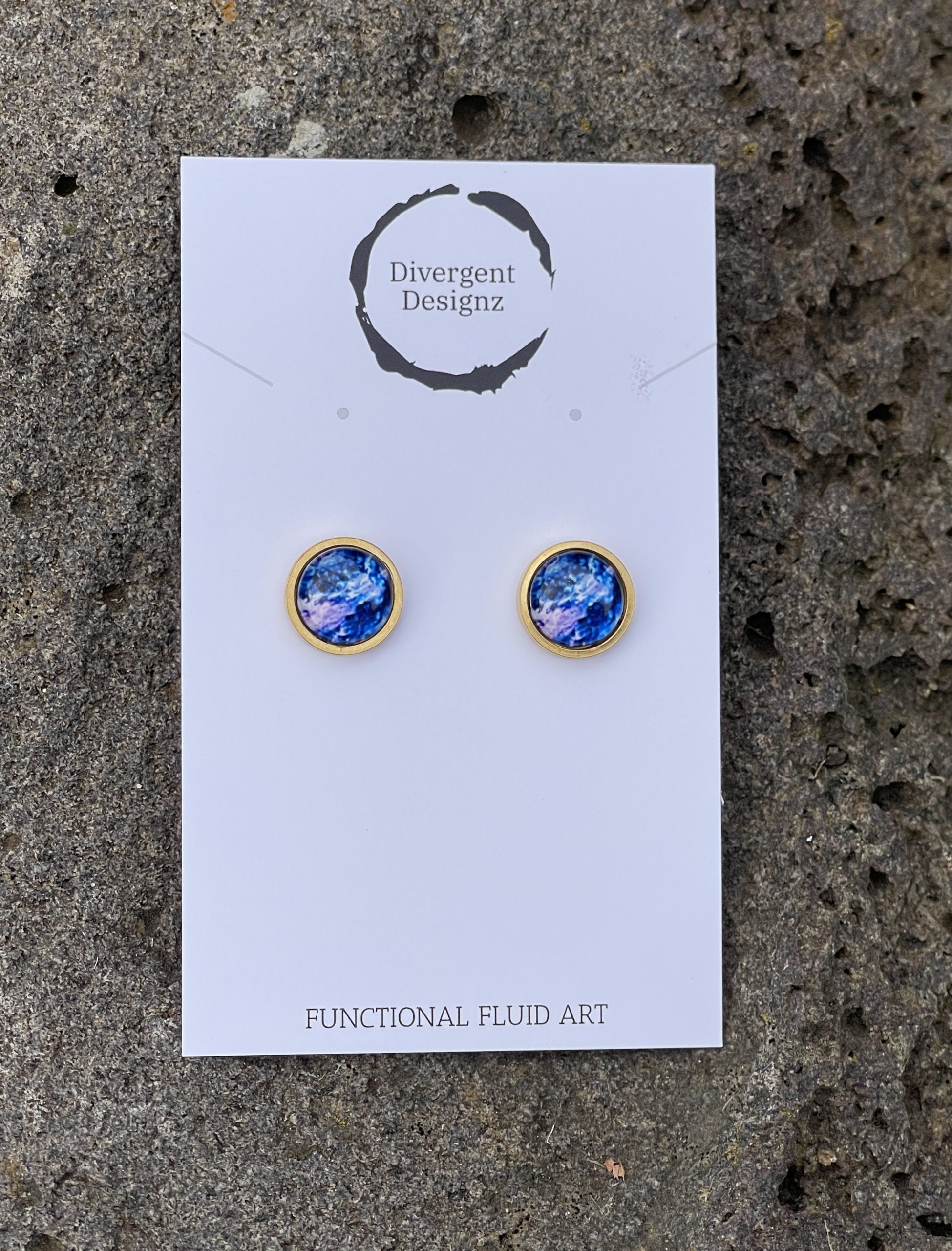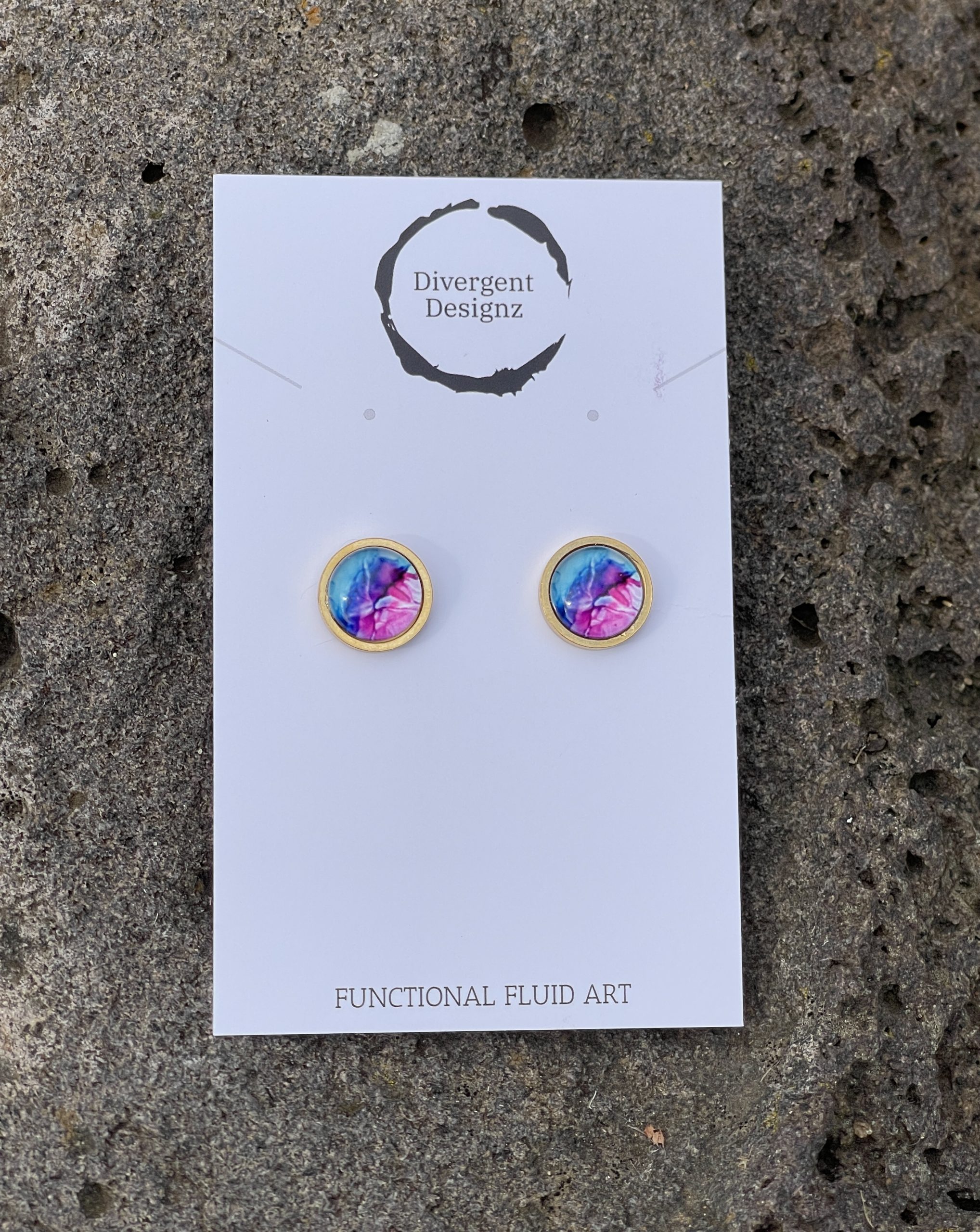 Beautiful handmade fluid art studs set in never fade gold toned stainless steel. Bright and vibrant, perfect for gifting. Gorgeous bright shades.