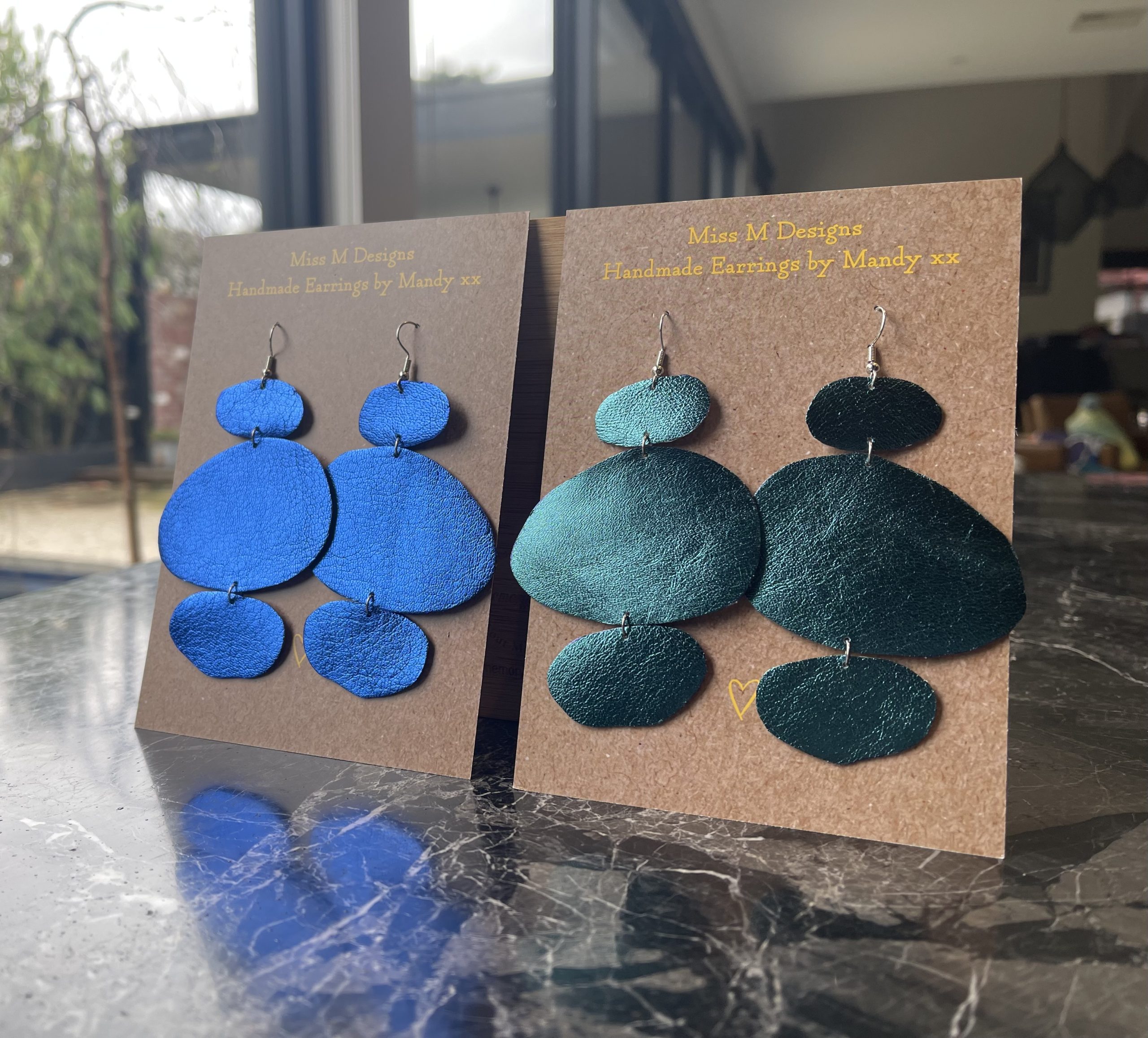 Pebbles – Absolutely stunning, teal or royal blue leather earrings.